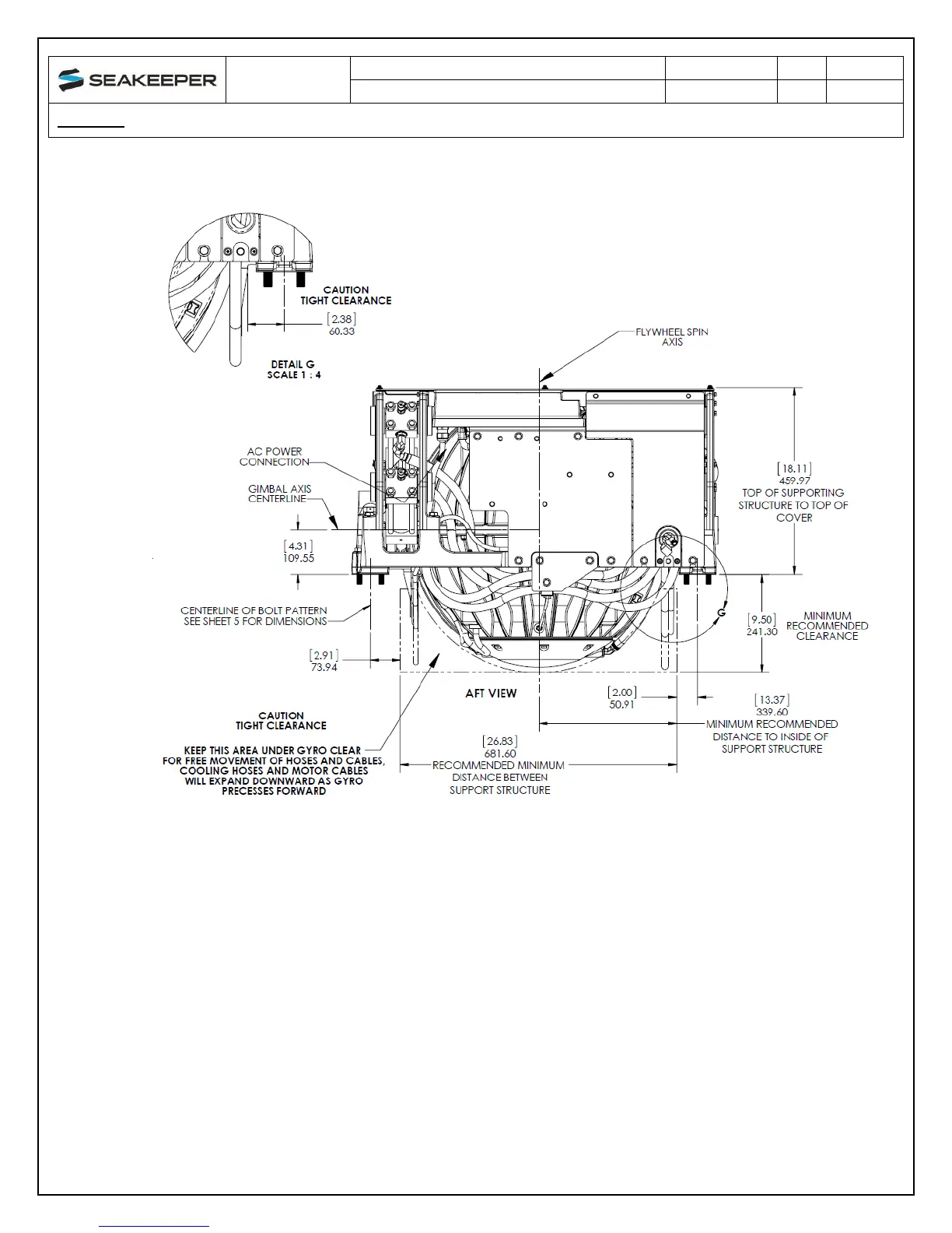 for dimensions and reference Seakeeper drawing NO. 90225 for complete Seakeeper