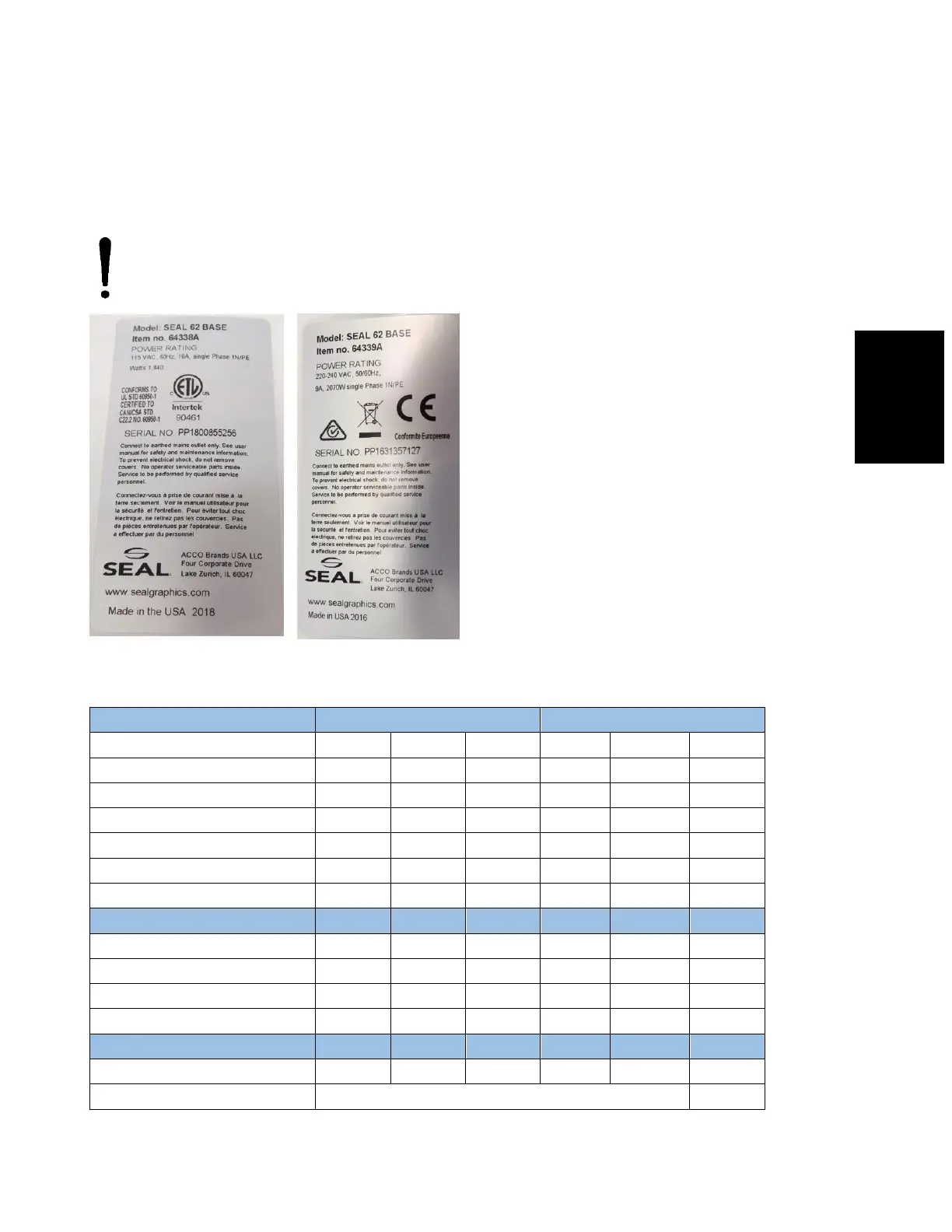 cabinet, on the rear side of the machine. This label indicates the model (version) and the rated