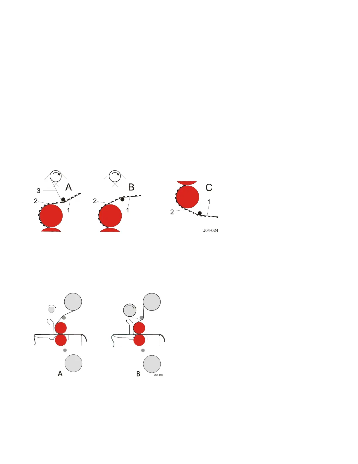 Note: In single sided processes adhesive residues will stay behind on the bottom roller where the