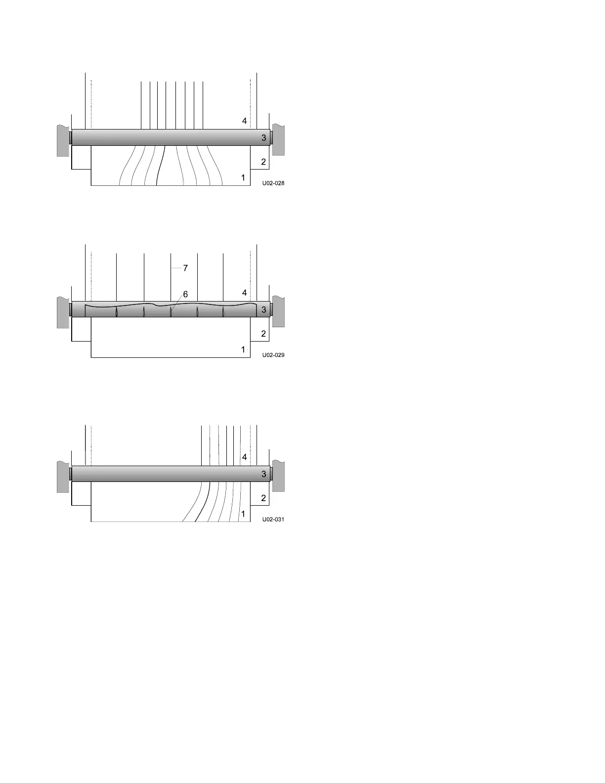 Increase the unwind tension until the wrinkles (6) in the film on the roller disappear. The lines (7)