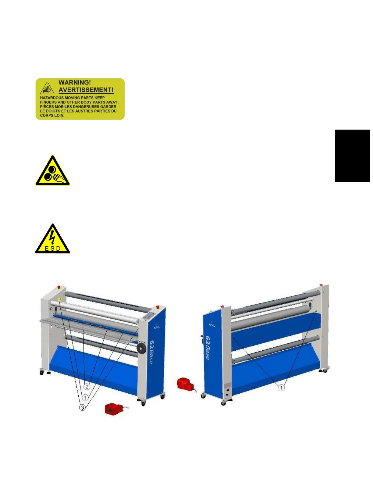 On the machine (See Figure 1) you will find the following warning symbols in black on a yellow