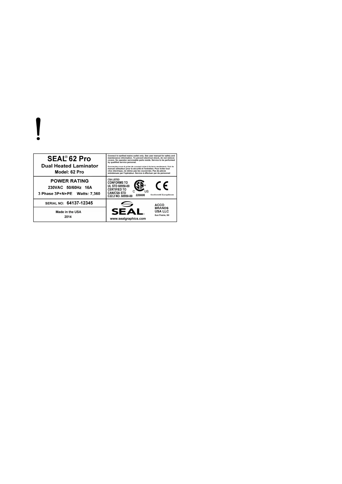 Abb. 5 : Identifikationsschild der Maschine (Beispiel).