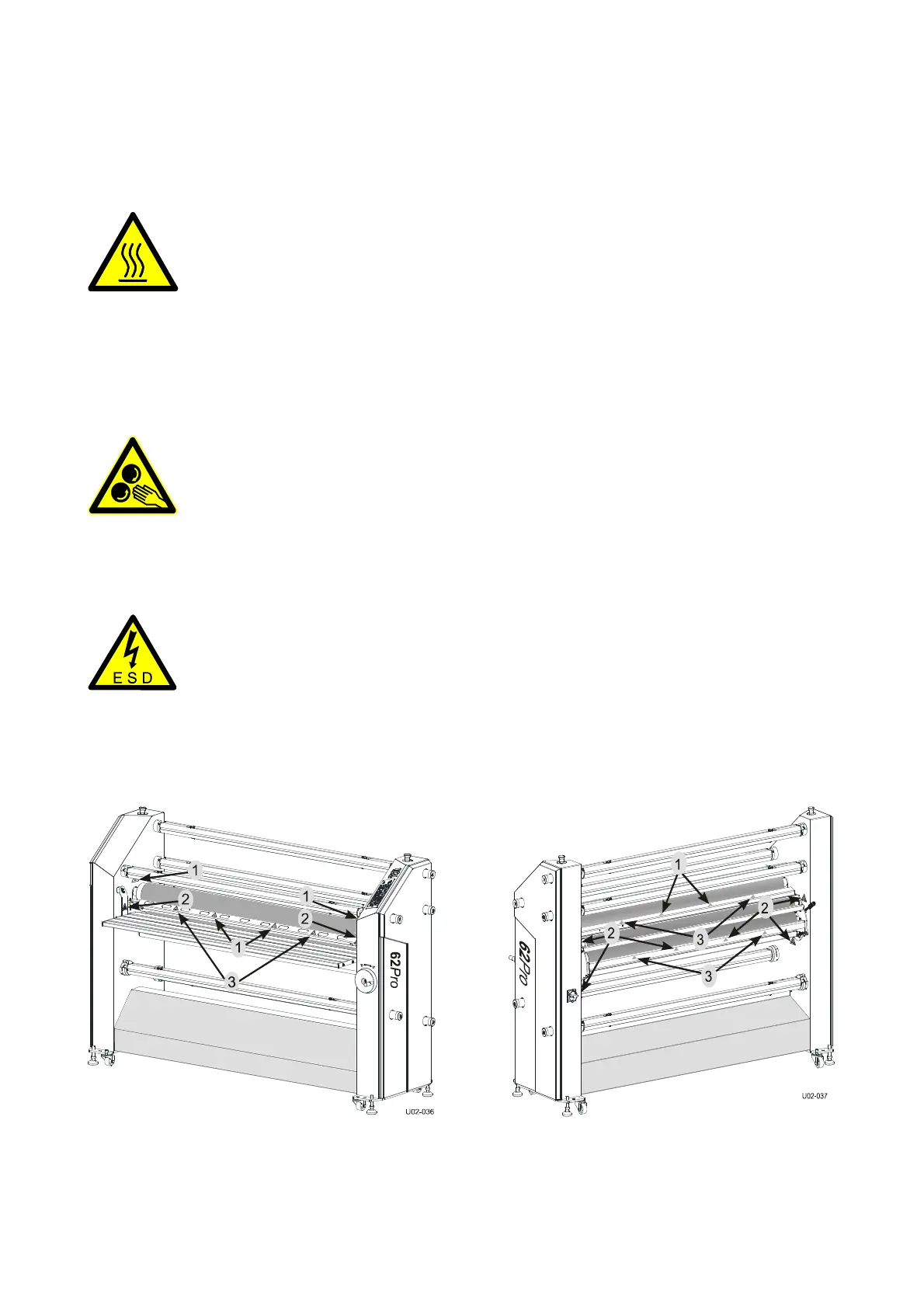 Sulla macchina (vedere Figura 1) si trovano i seguenti simboli di avviso in nero su sfondo