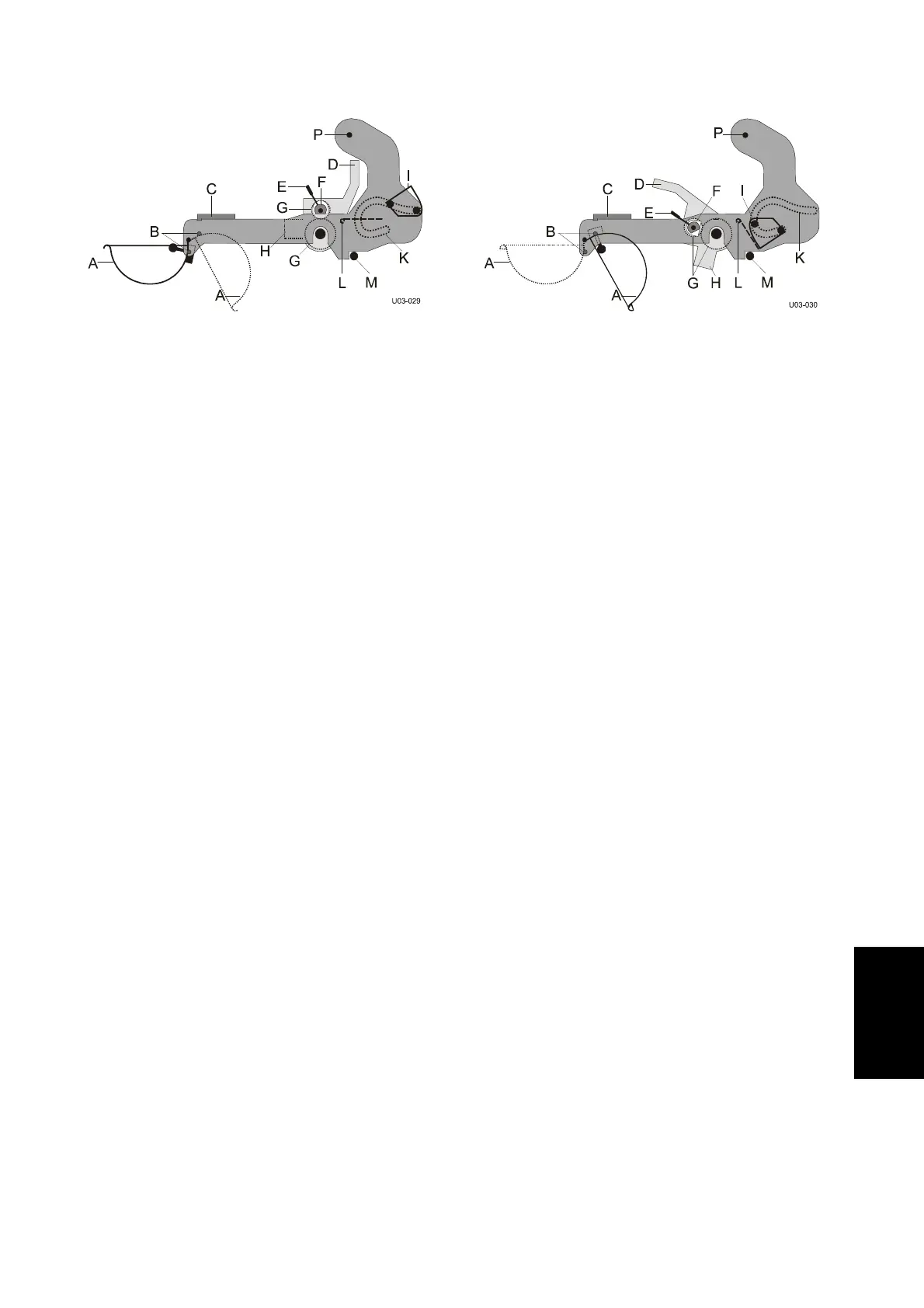 Per sollevare il cilindro superiore, utilizzare la manopola (E) che ruota l’eccentrico (F)