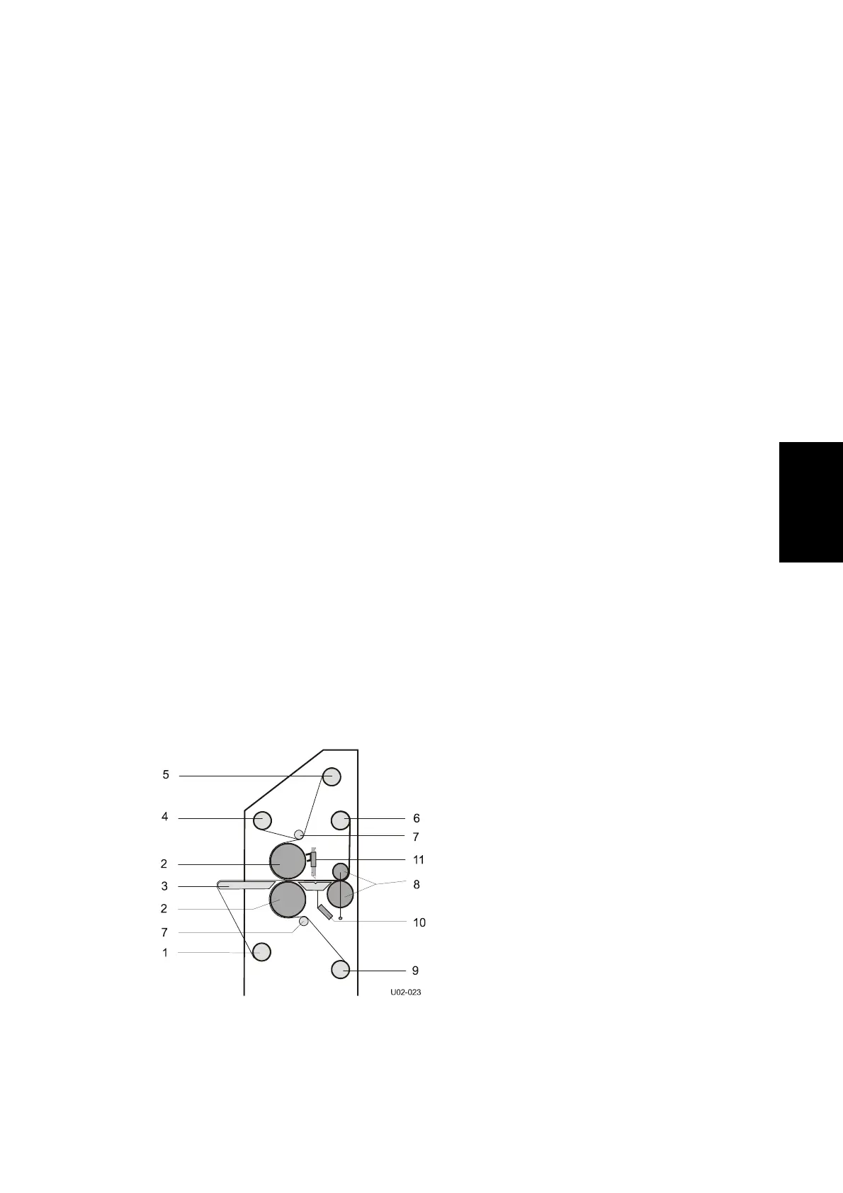 de la table frontale (3). L'axe supérieur de déroulement et d'enroulement (6) est réglé de façon à