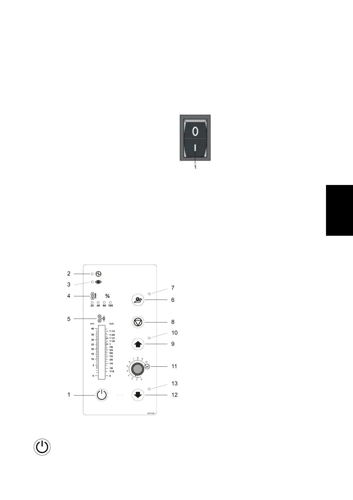 Commande MARCHE/ARRET (1), bouton à deux positions ;
