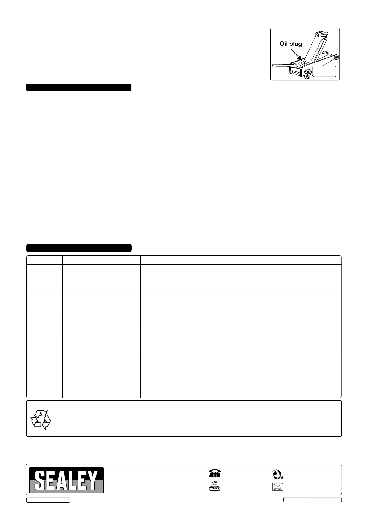 NOTE: Use a good quality jack oil, such as SEALEY HYDRAULIC JACK OIL.