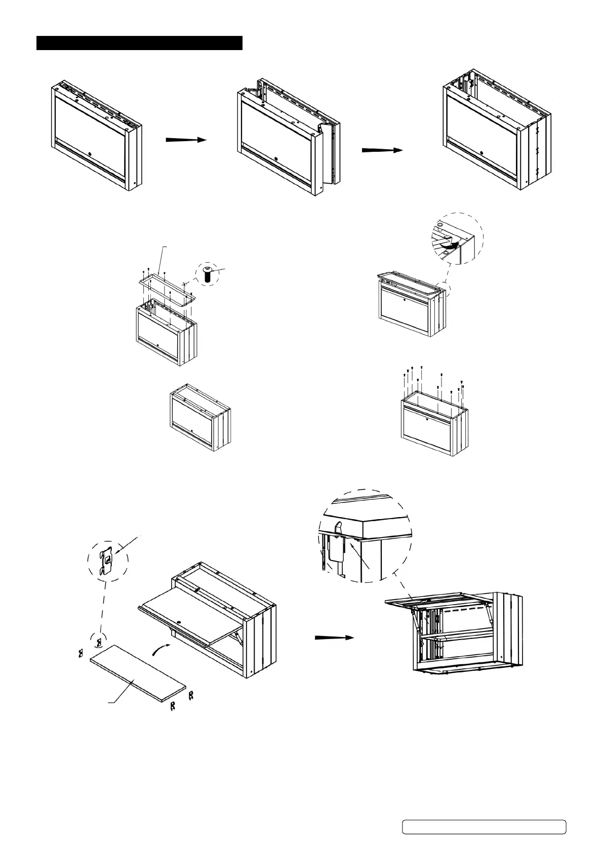 STEP 2: attach the top panel using 8x M6x16mm screws. STEP 3: Turn the cabinet over. Attach the bottom panel using
