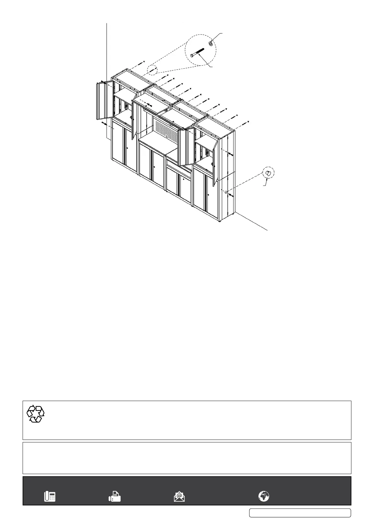 STEP 12: Attach the modular storage kit to the wall using twelve M6x65mm tapping screws and washers insert through wall studs. Insert the 6