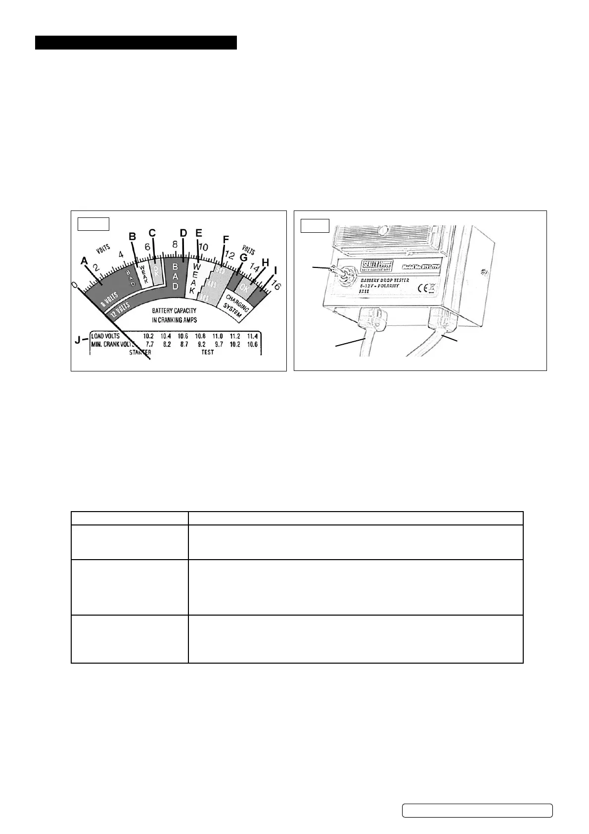 a) For 12 volt batteries the green sector (fig.1.F) border is marked with nominal cranking current from 300 to 500
