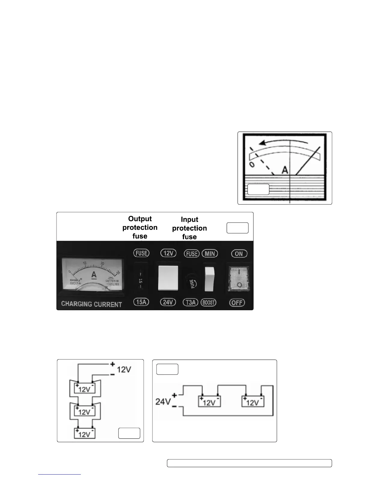 4.3.2. Check the current delivery to the battery by reading the ammeter on the front of the battery charger. During charging the pointer on the
