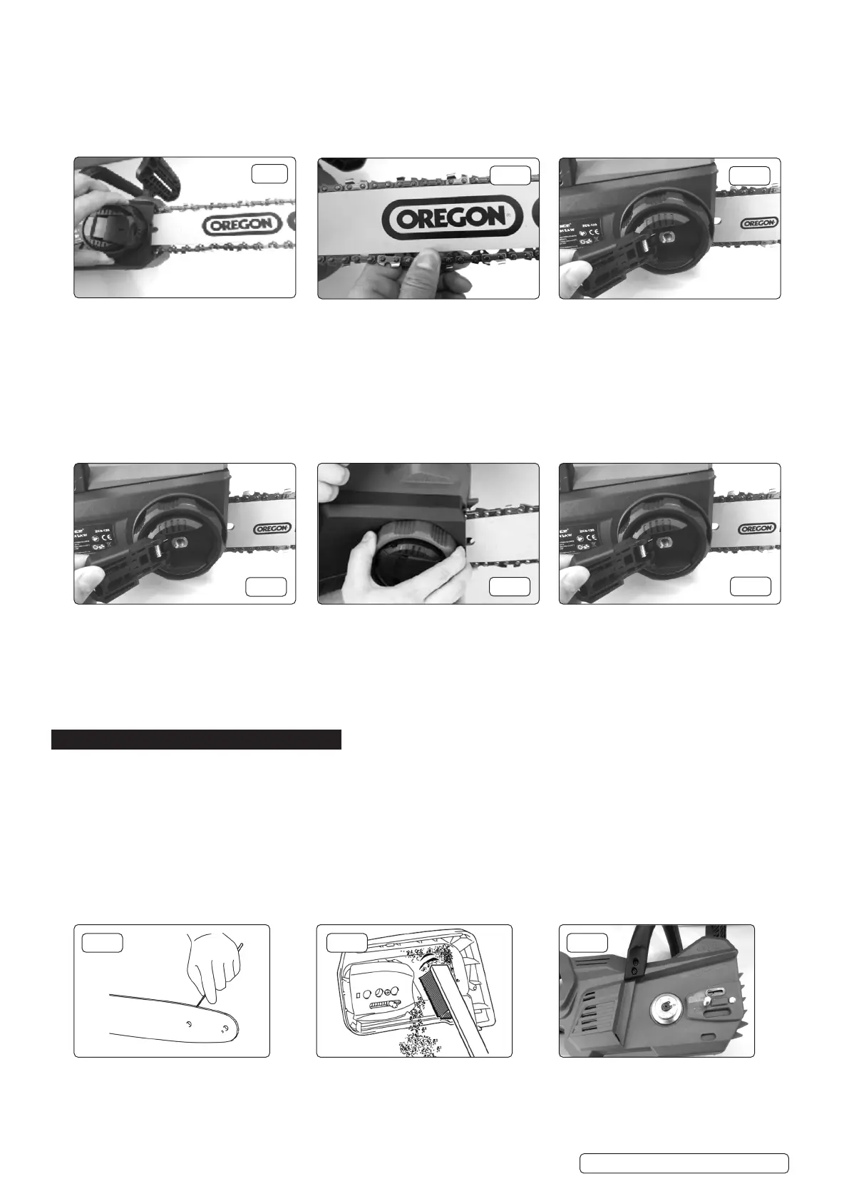 5.1.2. Chips and sawdust will build up in the guide bar groove. This may clog the bar groove and impair the oil ow. Clean out the chips and