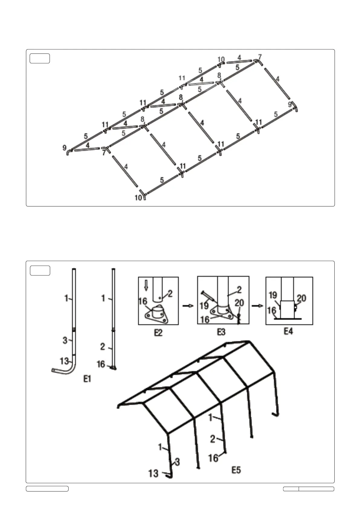 4.4.2. Follow fig.4 drawing E1 to connect tube 1, 3 and 13 to get the 4 corner legs.