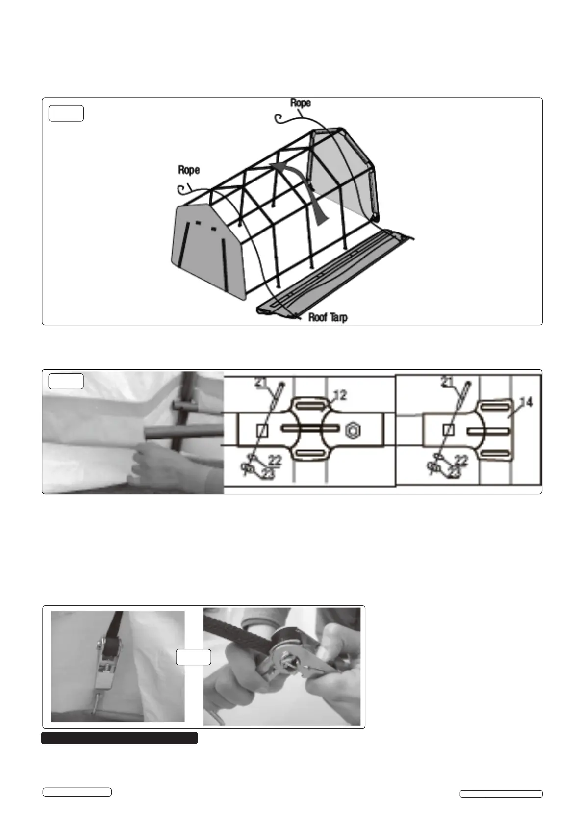 4.8.3. Pull the cover over the frame using the ropes, see fig.13, making sure it is centred over the frame.There should be an equal amount of
