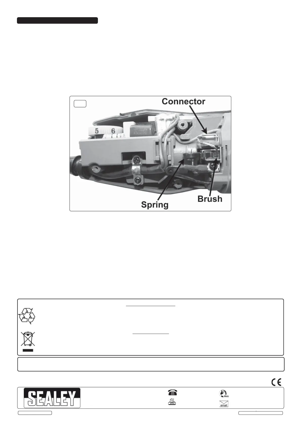 holder. Slide the connector onto the connector. Position the spring so that it bears down onto the end of the brush. Remember to renew