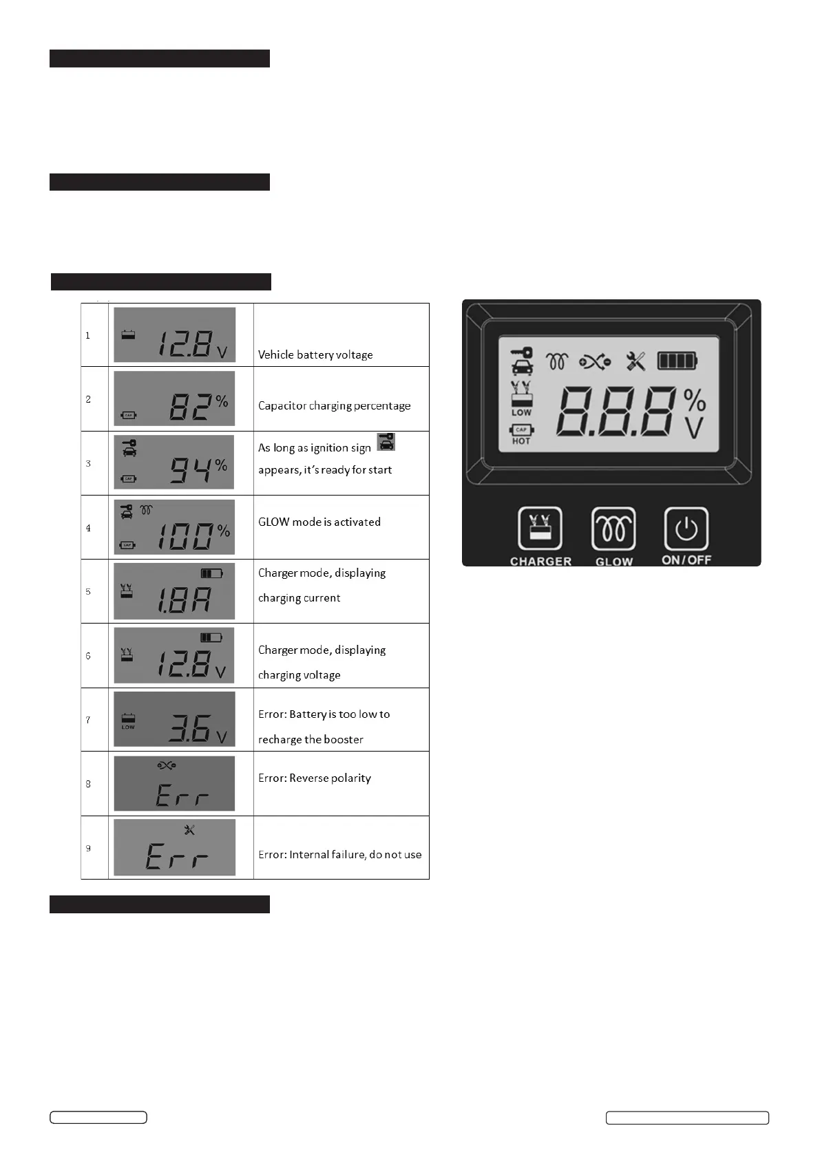 5.3.1. Connect clamps to the battery terminals, E/START will turn on automatically and the display will show the voltage of the vehicle’s