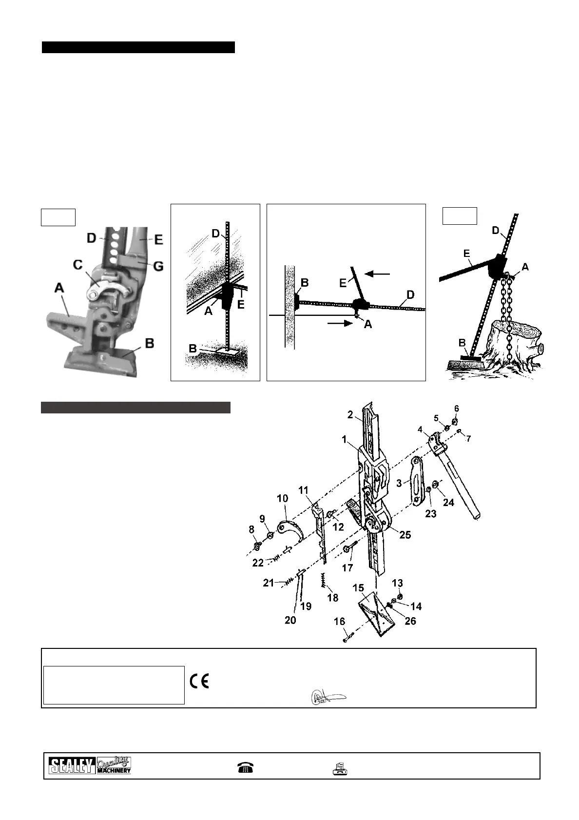 3.1.1. Position jack foot (all figures below item B) on a stable, strong base and locate lifting beak (A) appropriately in order to take the strain.