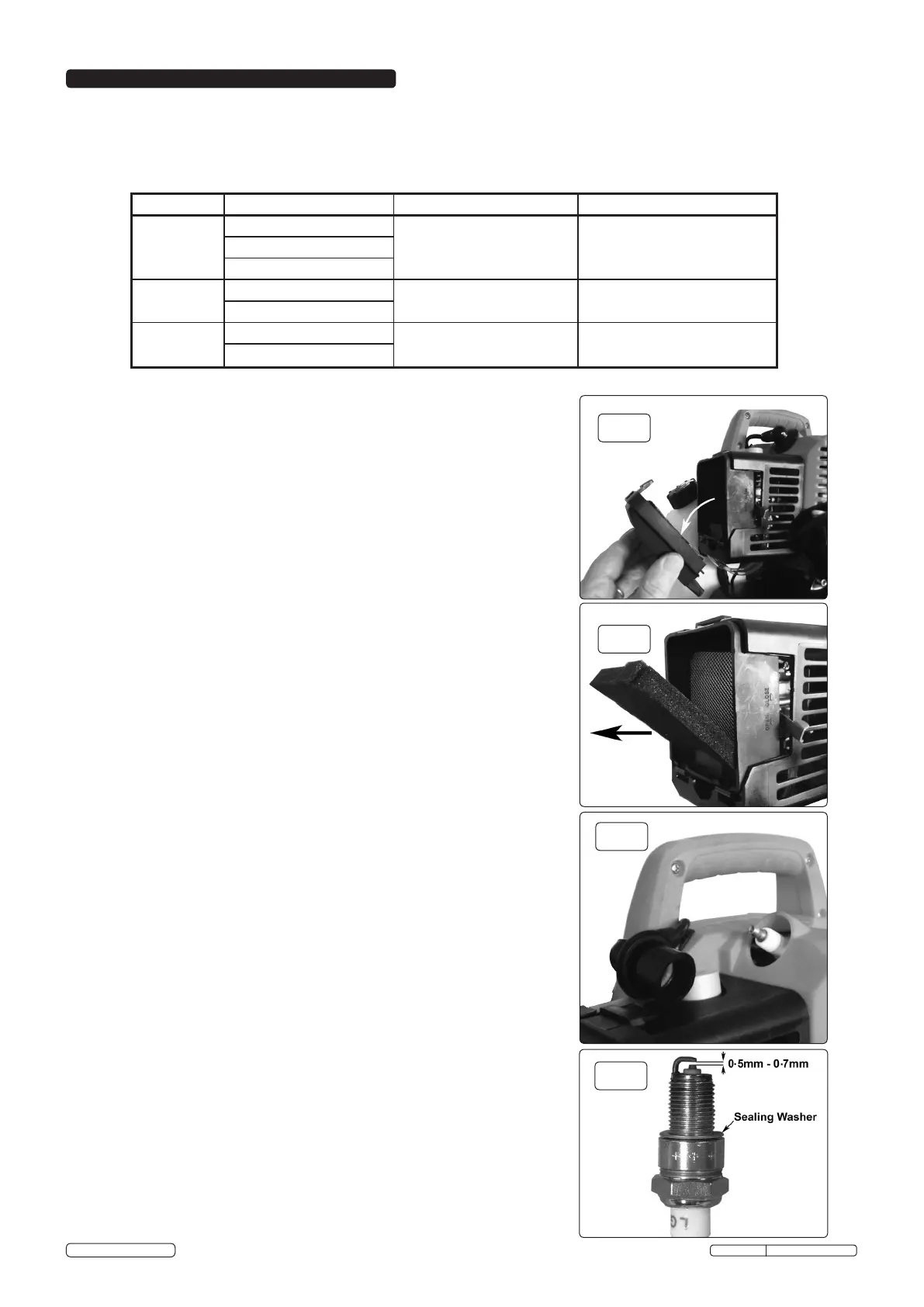 Note: To ensure that the engine performs correctly, the spark plug must not