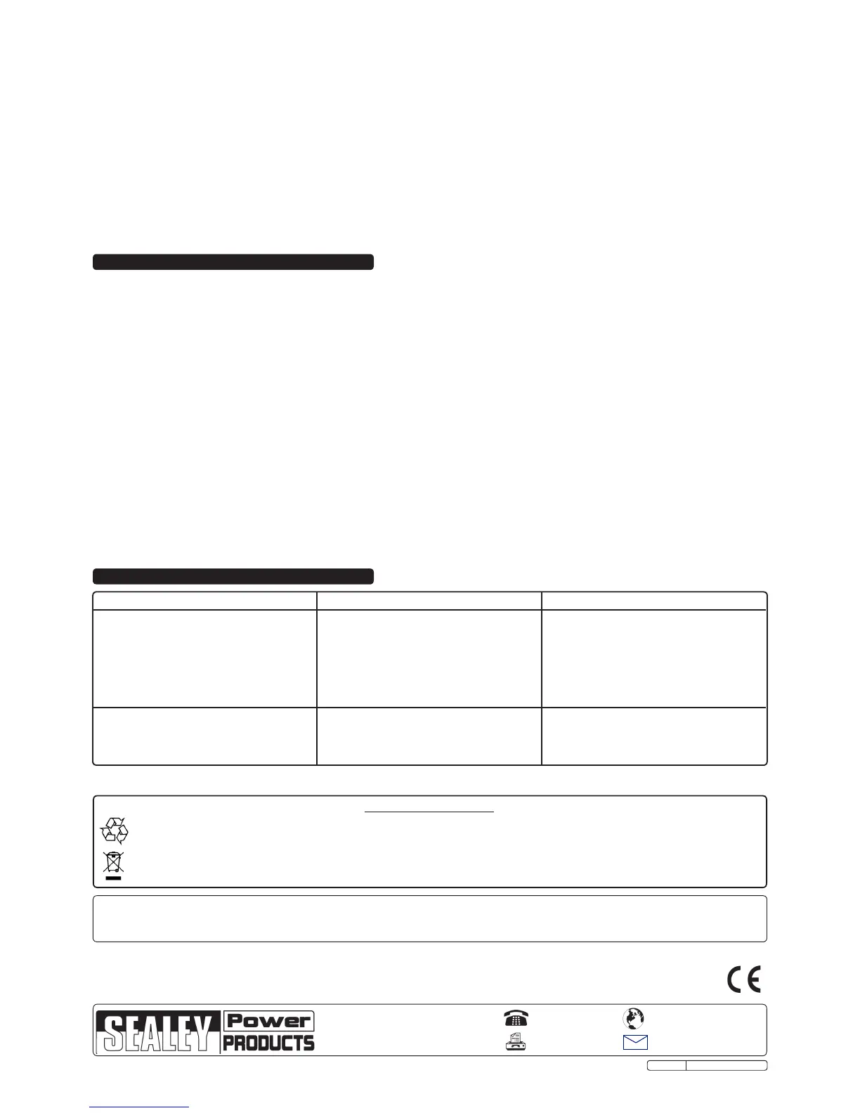 To obtain a parts listing and/or diagram, please log on to www.sealey.co.uk,