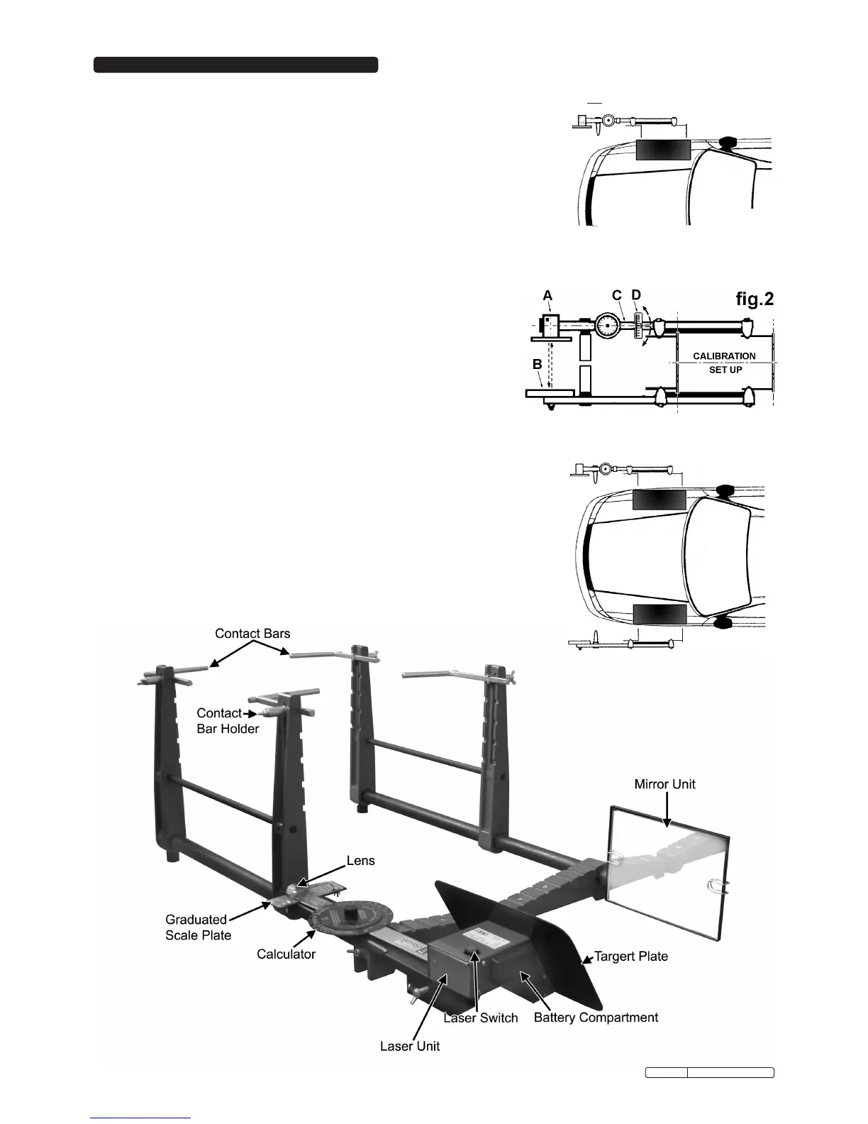 4.2 Position the laser unit against the offside front wheel (see fig.1) and adjust the height of
