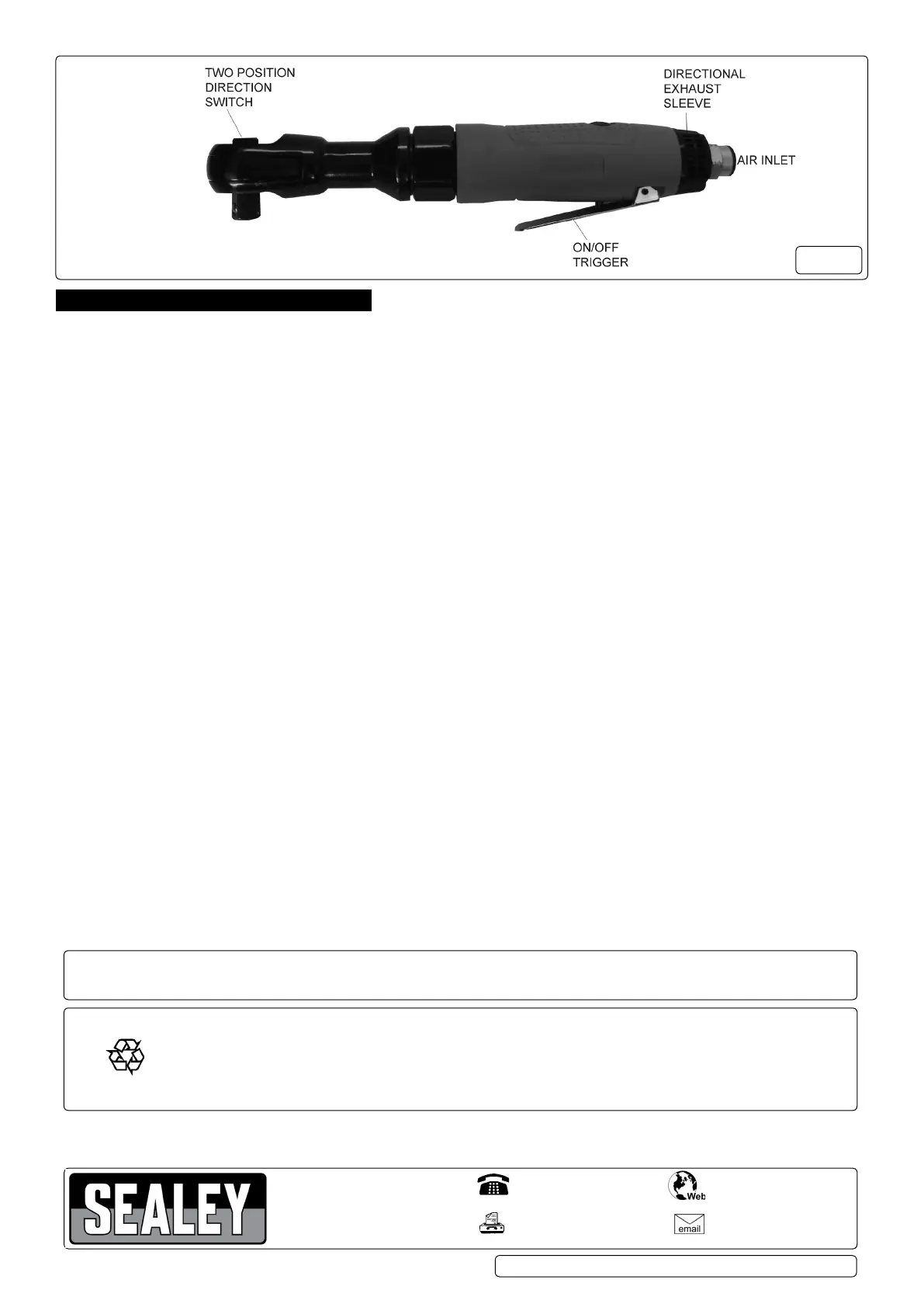5.1. If the air system does not have an oiler, lubricate the air wrench daily with a few drops of Sealey air tool oil dripped into the air inlet
