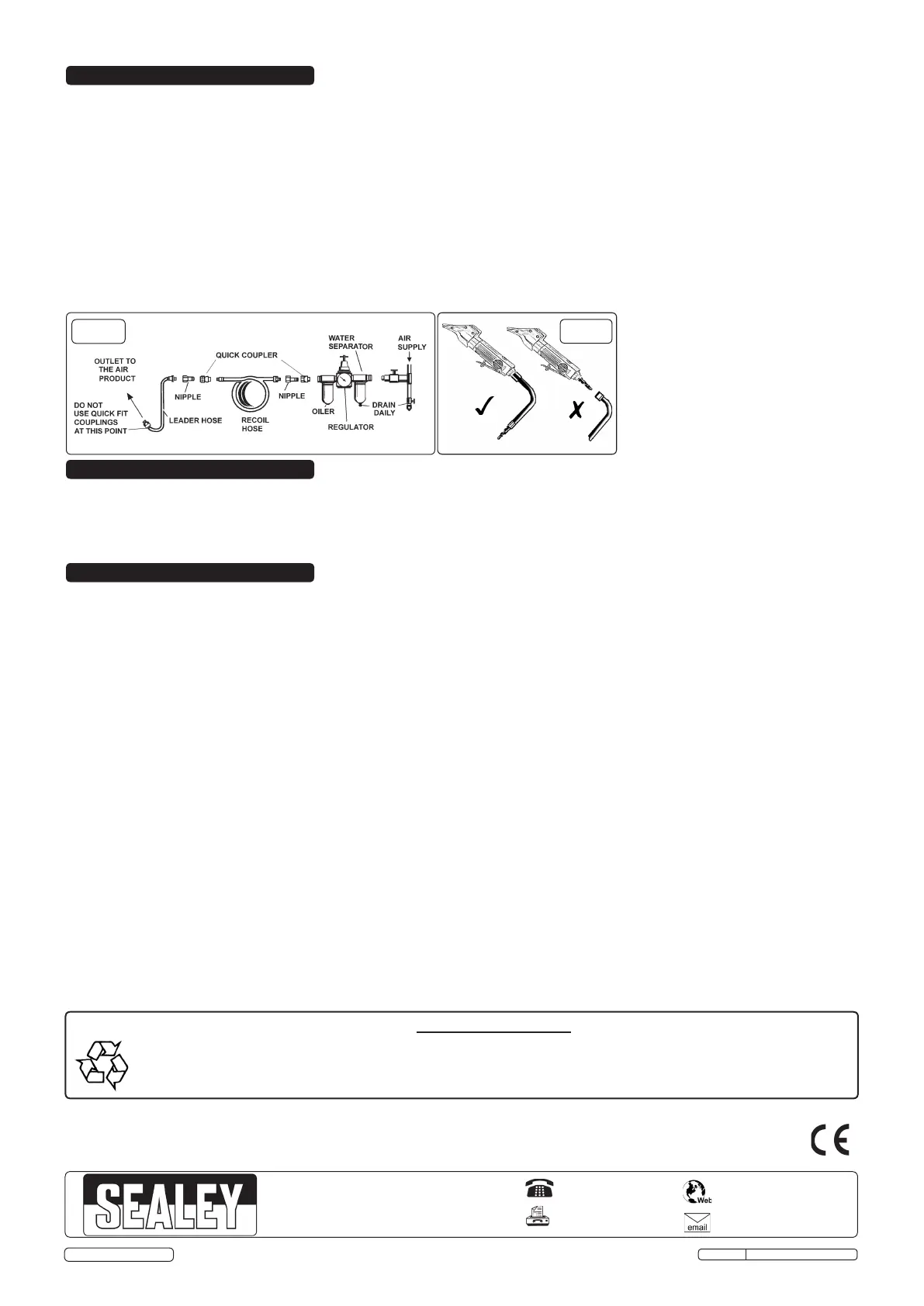 6.2. If the system does not have an oiler lubricate the tool daily with a few drops of Sealey air tool oil dripped into the air inlet.