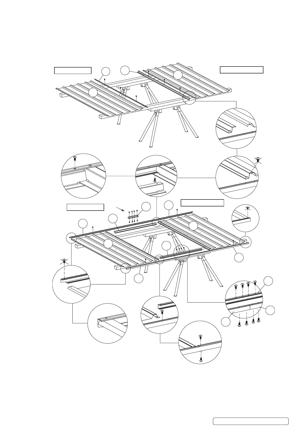 Fix parts 26P, 26N (top channels), 26L, 26M and 23A (bottom channel) with self tapping screws. Enhance the top channels by applying part 66