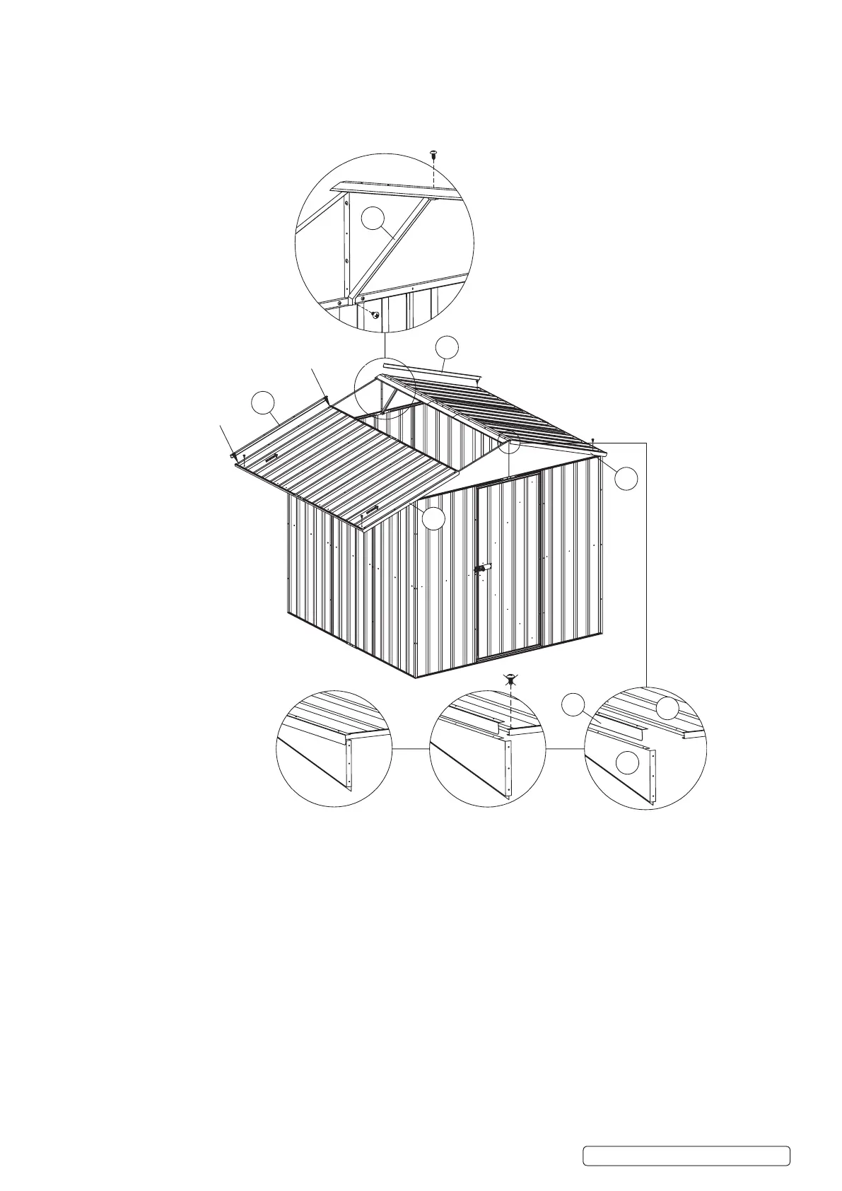 below. Join the sheeting and the gable using part 54 (lip) and then x the 4 corners using 16mm self tapping screws. Note: Do not x central