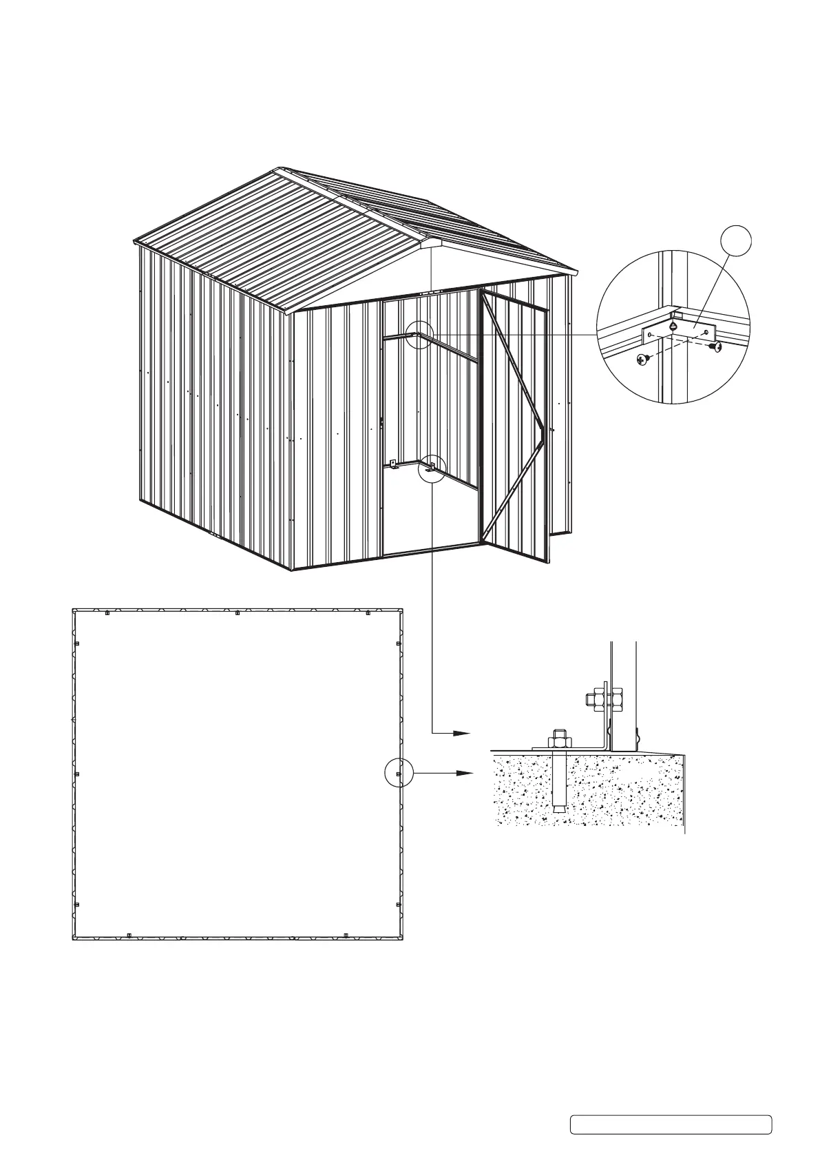 Now t the bolt down kit as per the diagram below. Strengthen the mid wall brace by applying part 72 (mid wall brace bracket) to each corner if