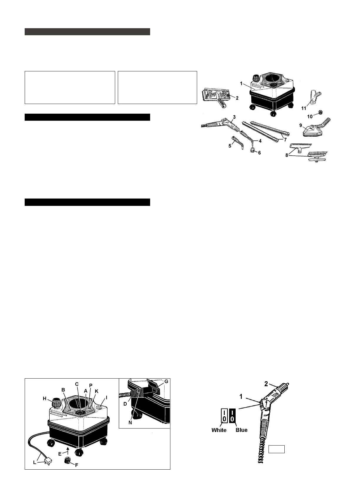 4.10. If a hot water jet is required, either to remove stubborn dirt or to rinse after steam cleaning, switch on red switch (fig.2.P) and then operate