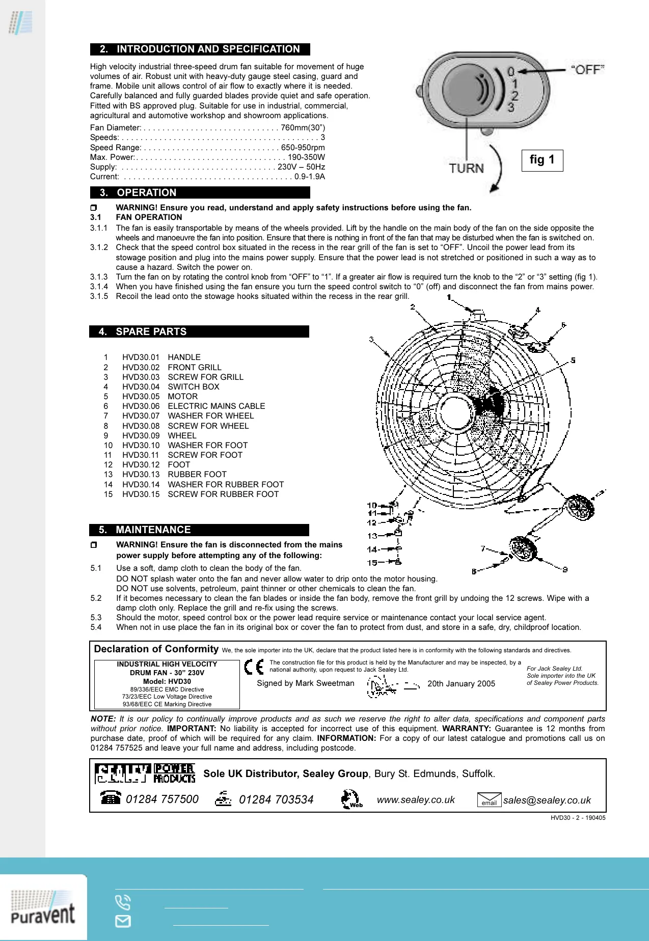 wheels and manoeuvre the fan into position. Ensure that there is nothing in front of the fan that may be disturbed when the fan is switched on.