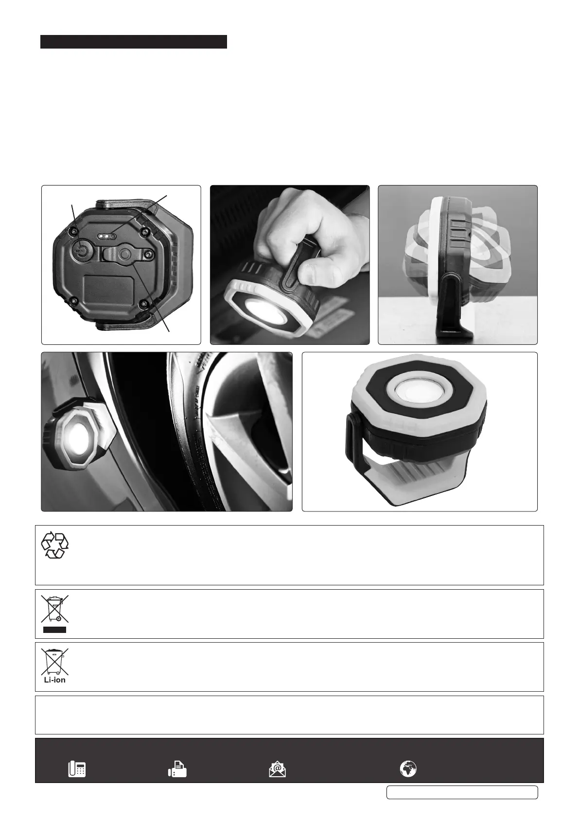 4.2.3. The lamp may be held by the handle or attached to any ferrous surface by using the magnet. When the light is attached by the