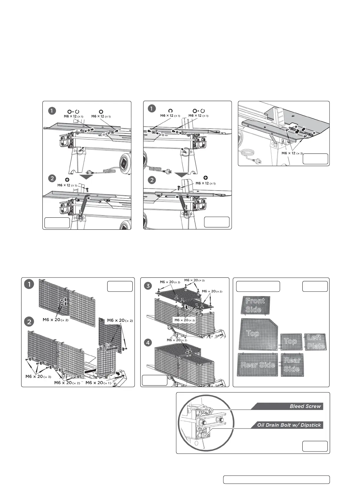 4.3.2. Attach the front guard plate, left guard plate and rear guard plates to the log tray and bottom plate. Secure the front and rear plates