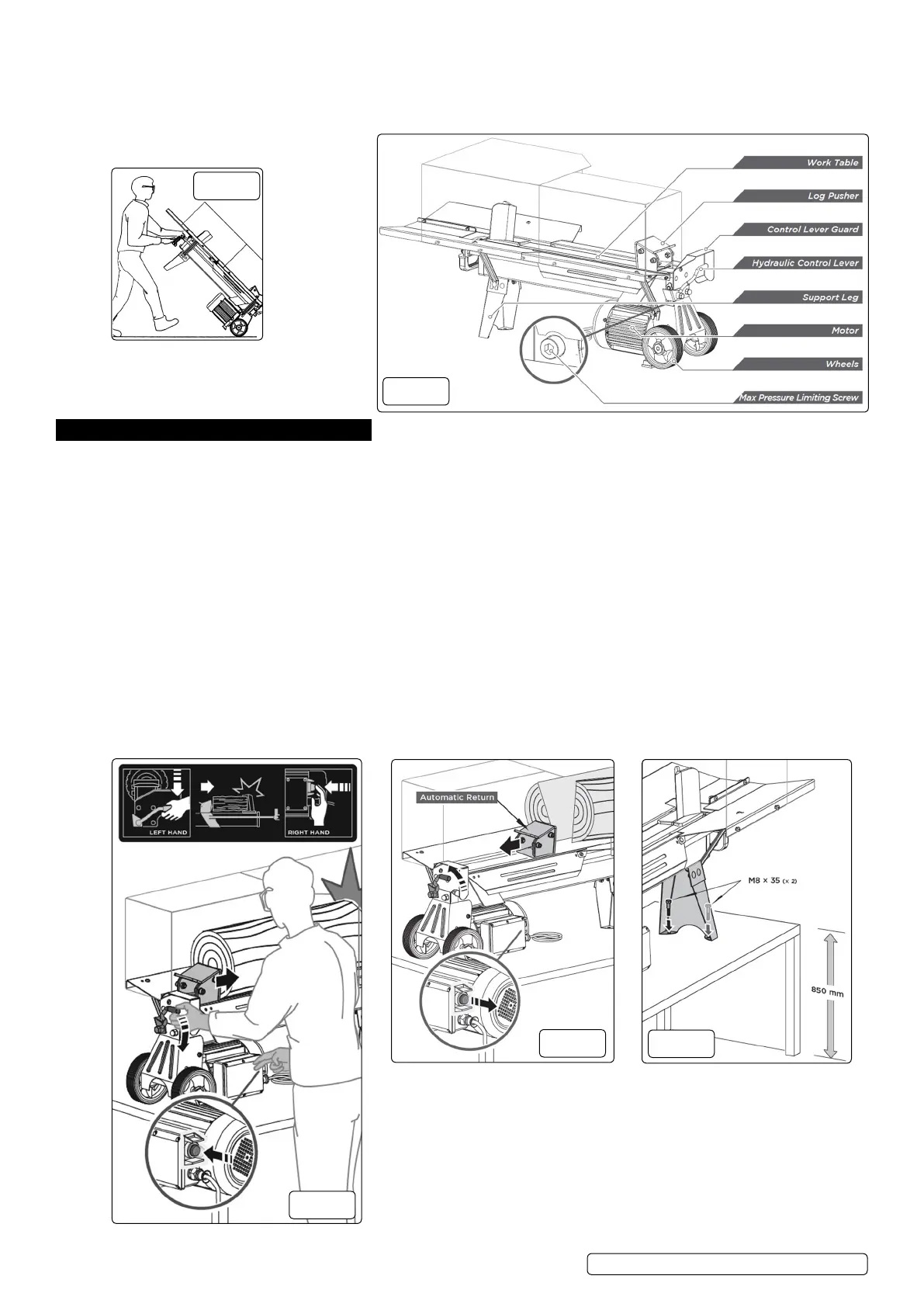 WARNING! Must only be used correct height. Log Splitter must be securely mounted so that the hold-to-run two-hand control device