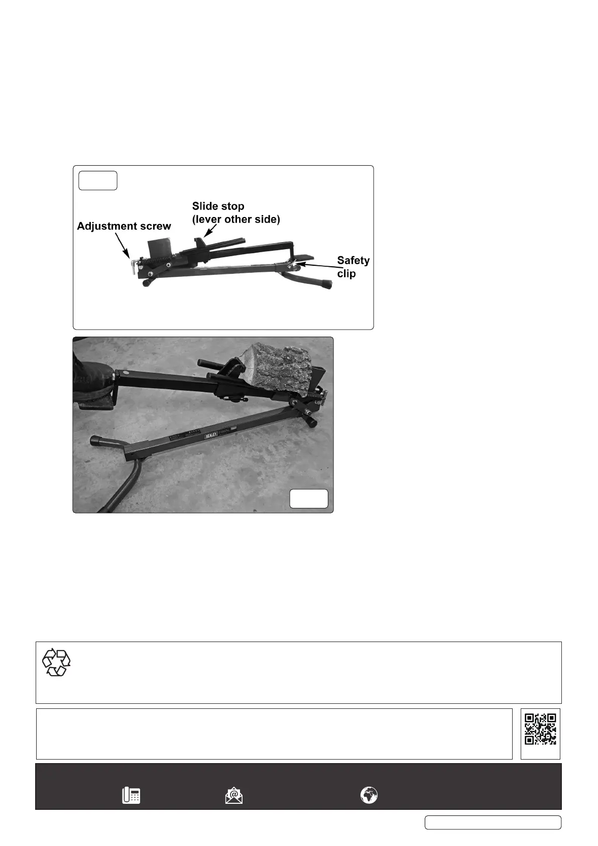 5.3.3. To remove a log from the splitter, that has not been split all the way through, lift the lever on the slide stop and pull it back, place your
