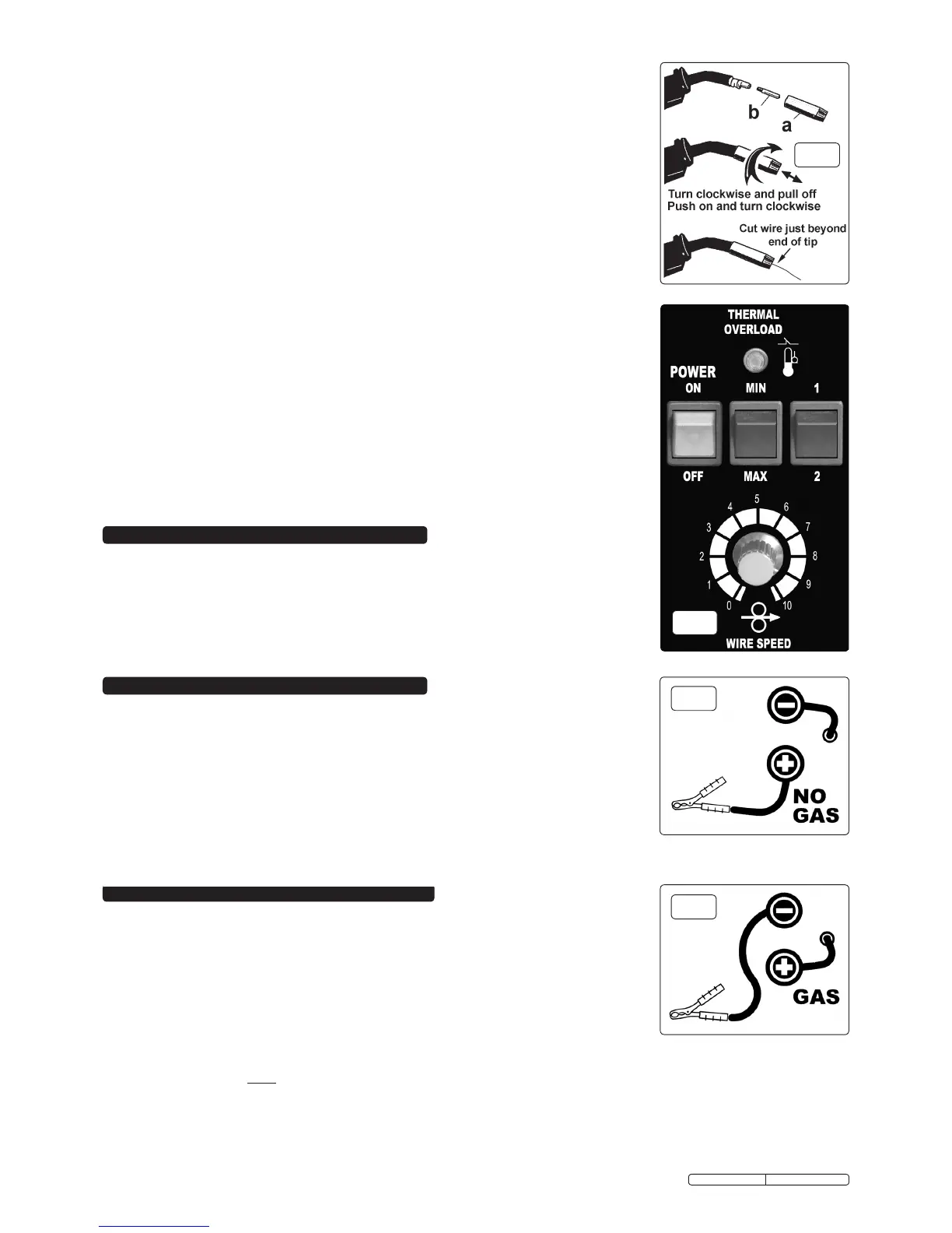 6.5 Set up the current switches to give the required power setting and adjust the wire speed accordingly.