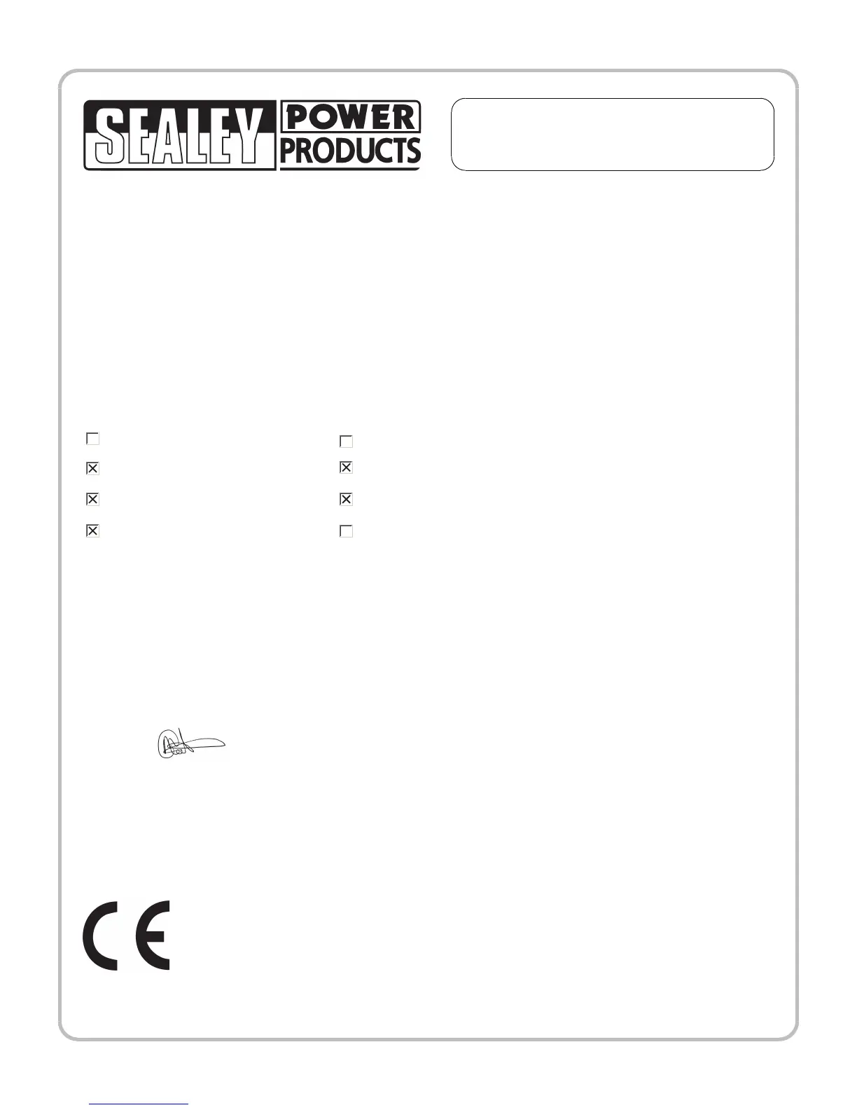 Manufacturer's authorised representative within the EC: Jack Sealey Ltd. Kempson Way, Suffolk Business Park,