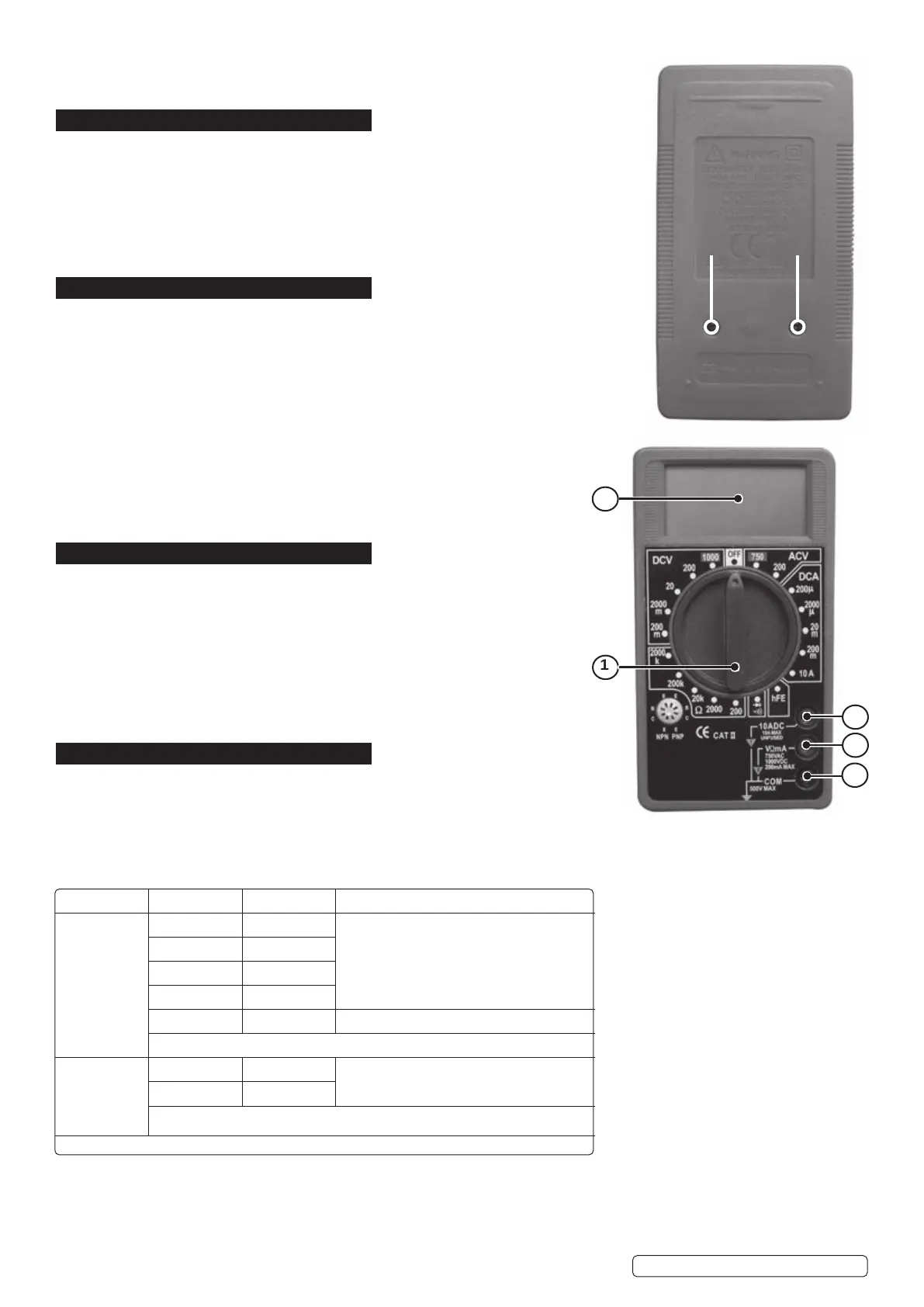NOTE! If meter does not work properly, check the fuses and battery to make sure that
