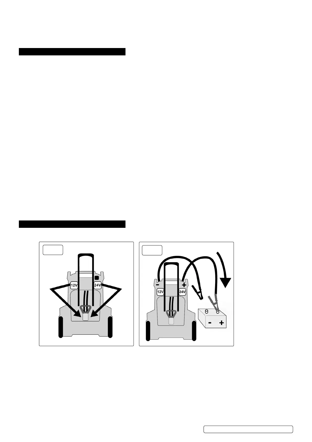 5.5.1. Attach the output cables to the battery and chassis as indicated below. Never allow the output clamps to touch each other.