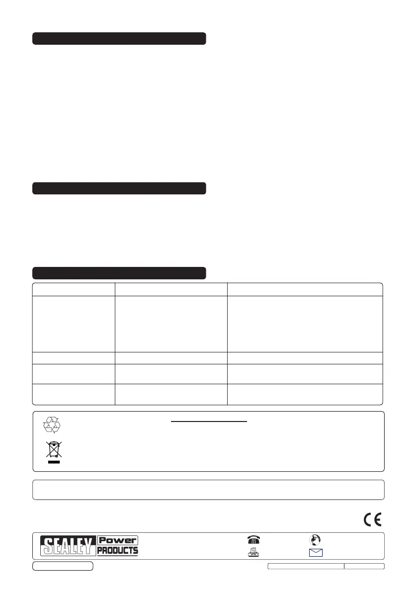 Parts support is available for this product. To obtain a parts listing and/or diagram, please log on to www.sealey.co.uk,