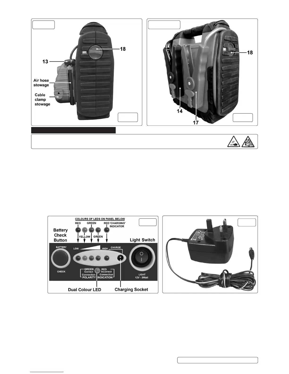 V IMPORTANT: Always ensure that the vehicle voltage matches the voltage of the Roadstart unit. Do not operate any of the units