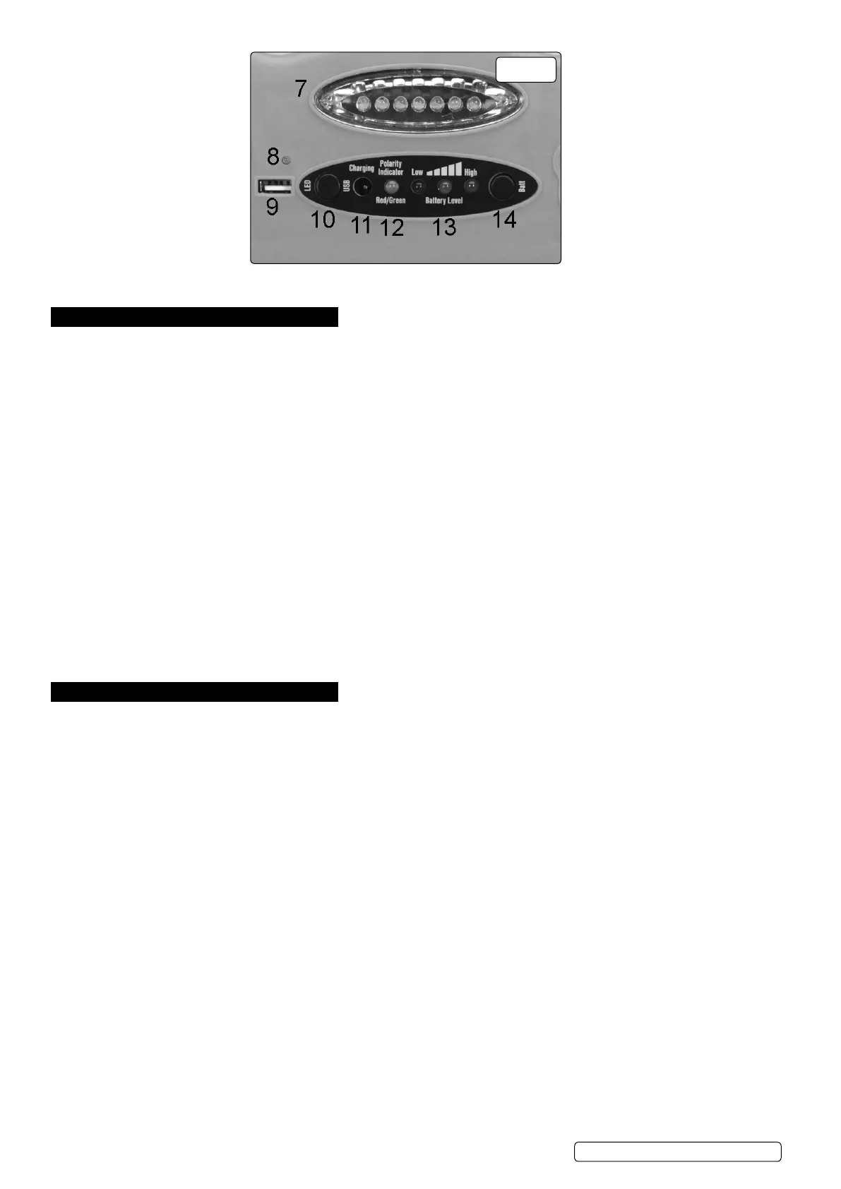 5.1.4. Press the battery level check button. If the green light does not illuminate the unit must be charged before it can be used for jump