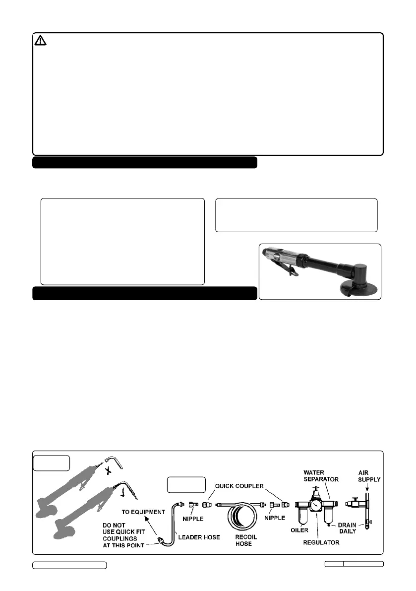 3.1.6. Line pressure should be increased to compensate for unusually long air hoses (over 8 metres).
