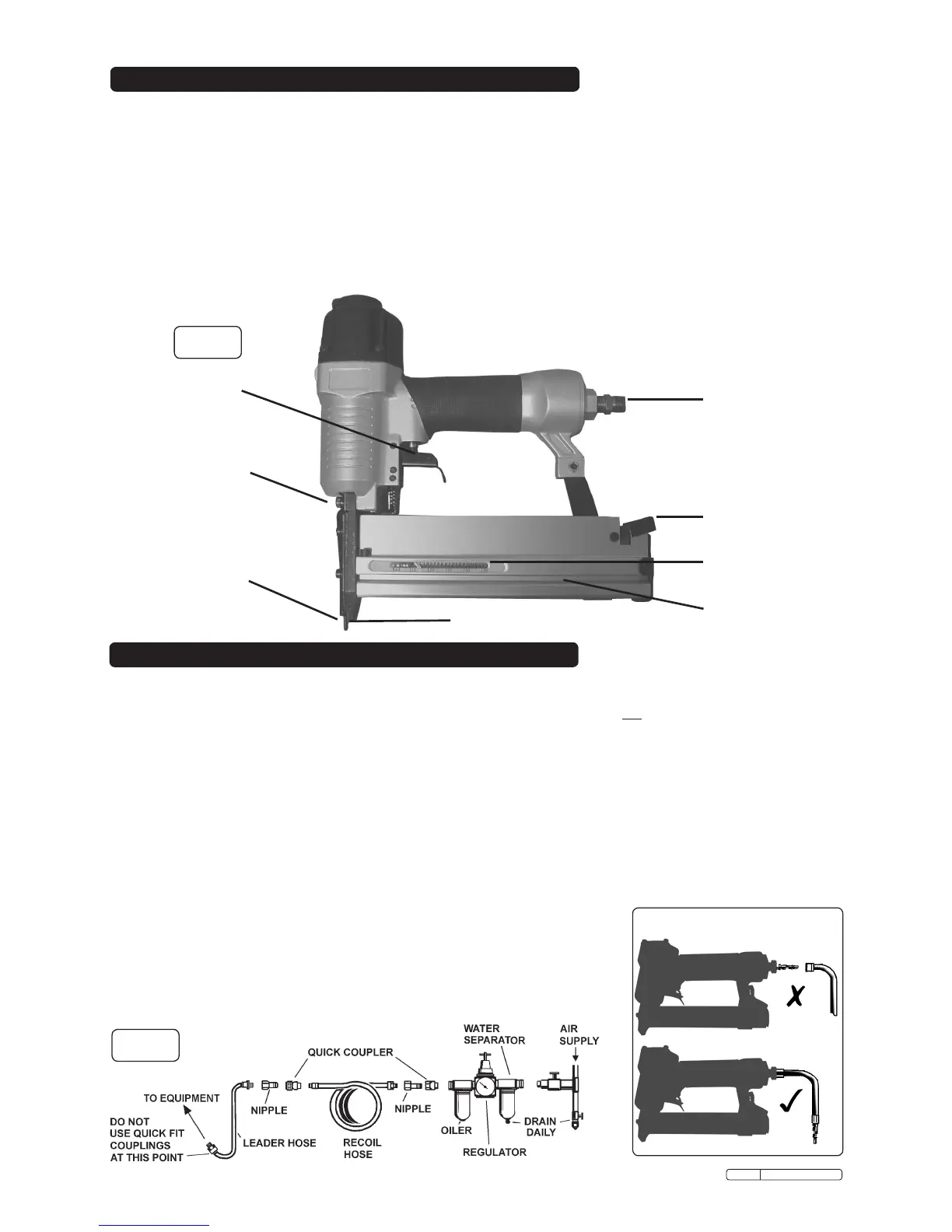 to the air nail/staple gun. To overcome this, connect a leader hose to the nail/