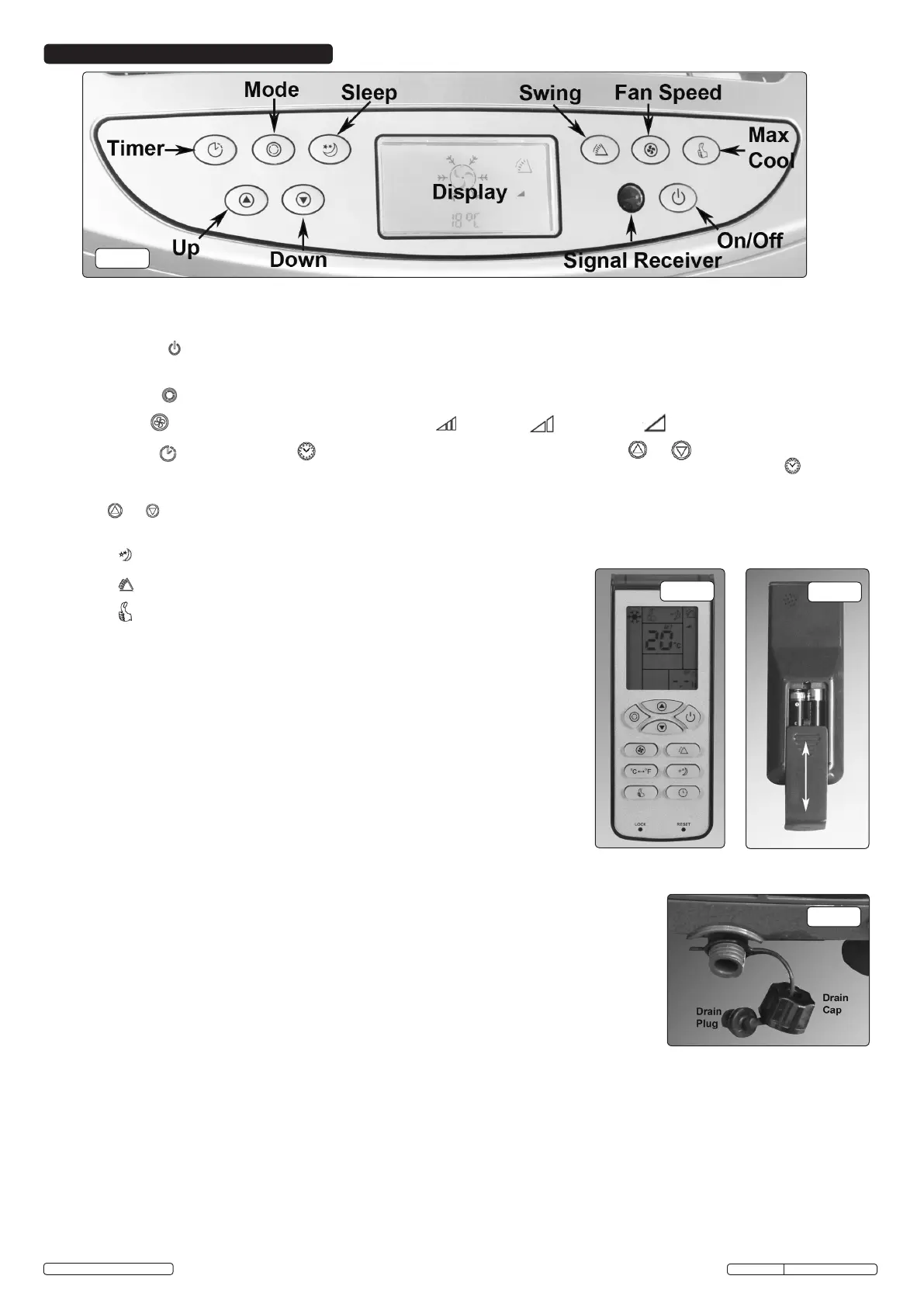5.1.2. On/Off Button : When this button is pressed, the unit will enter cooling mode (the default temerature setting is 24°C/75°F). A further press of
