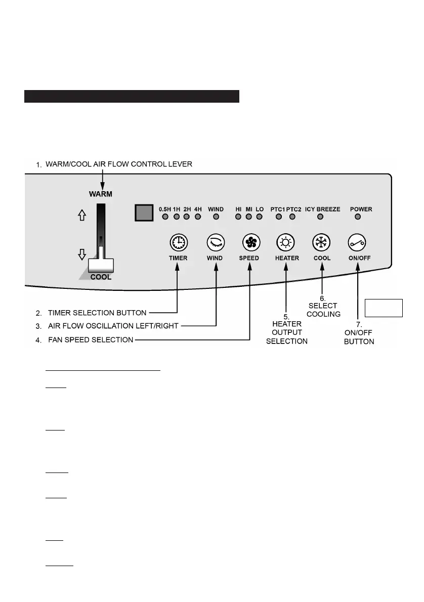 the ‘COOL’ position. Press the button once to activate the cooling function. The ‘Icy Breeze’ indicator lamp above