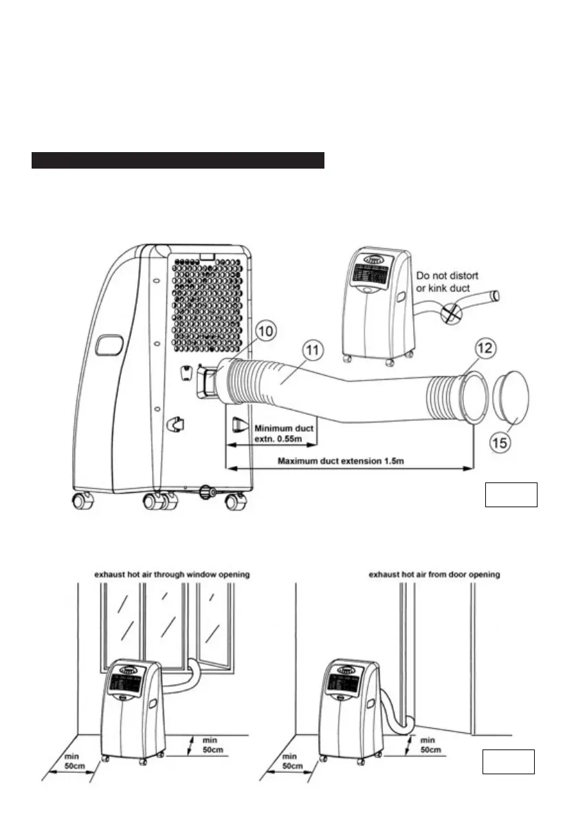 4.2 Exhaust duct placement. See fig.3. Site the unit close to a door or window that can be left ajar, as indicated