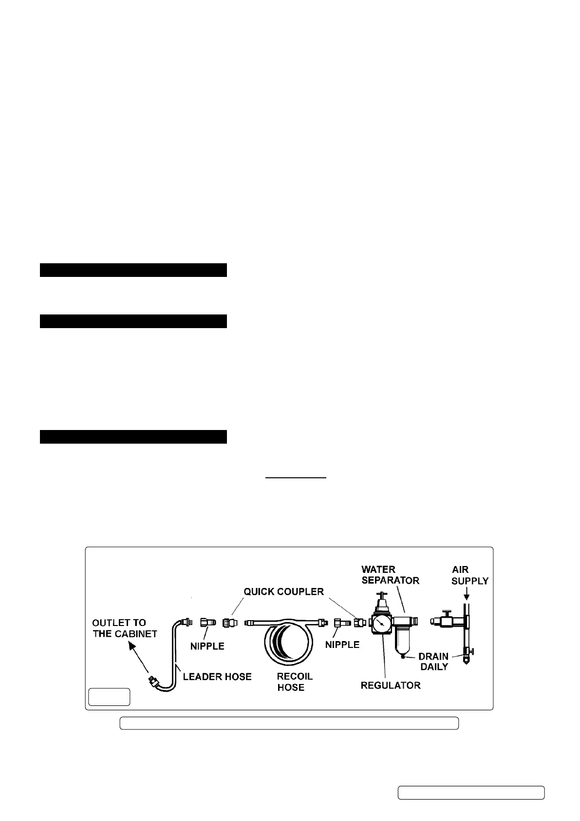 4.1.2. Drain the air supply tank daily. Clean compressor air inlet filter weekly. For recommended hook-up see diagram below.