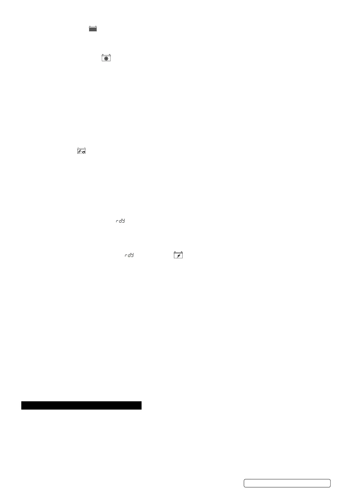 6.15. Tester and Charger: When rst turned on, the unit operates only as a tester, not as a charger.