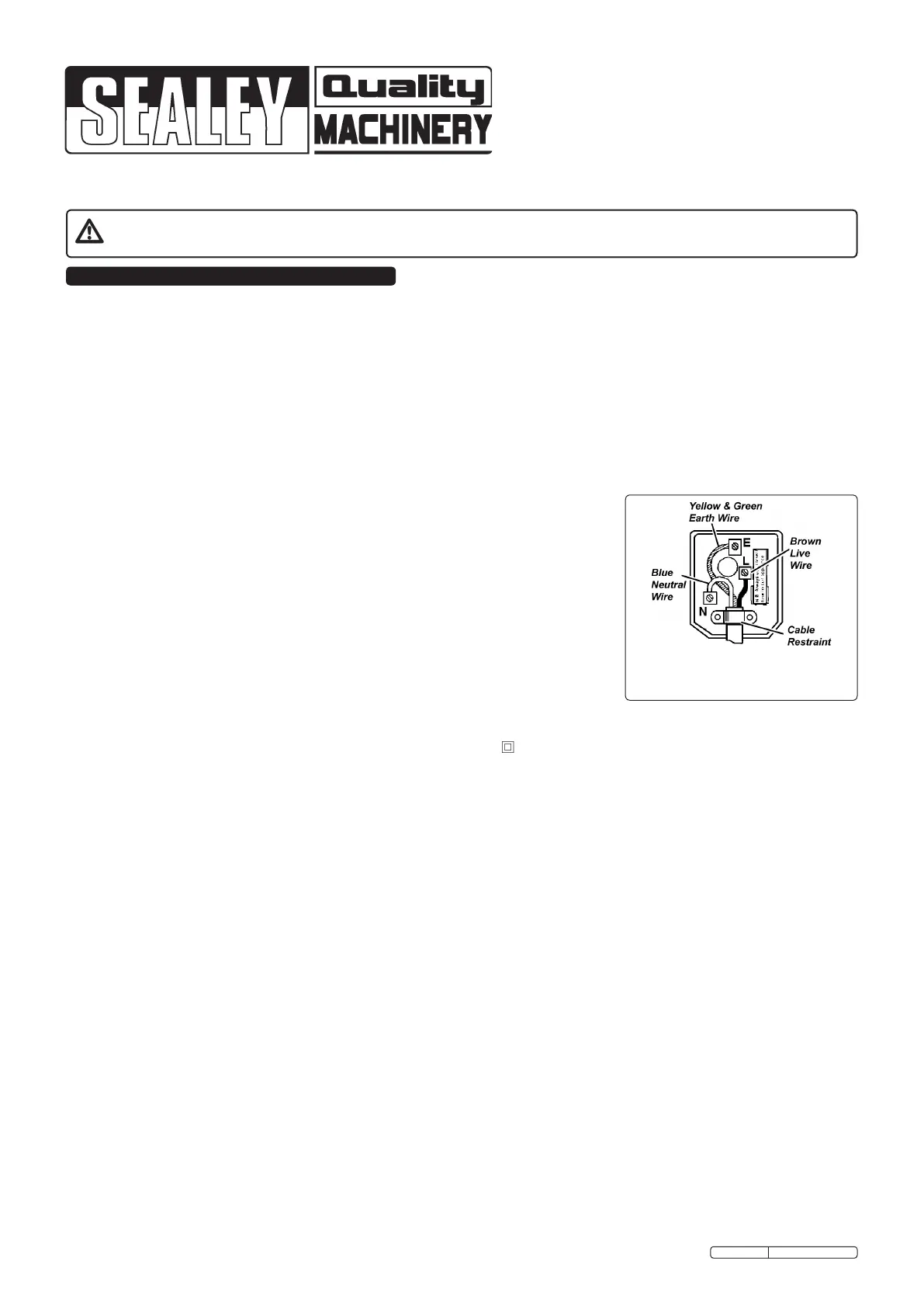 by an RCCB. If in any doubt consult a qualified electrician. You may obtain a Residual Current Device by contacting your Sealey dealer.